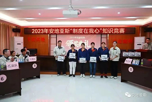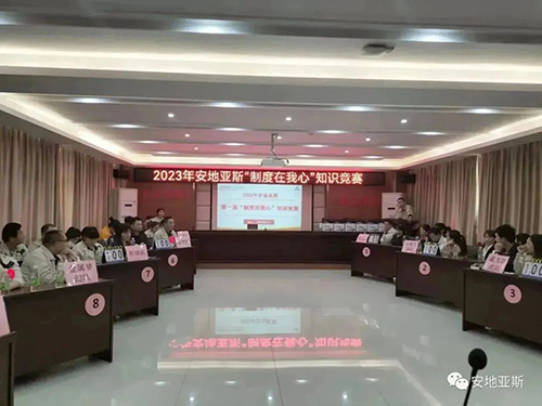 陽春三月、風(fēng)和日麗。為推動(dòng)公司制度建設(shè)的整體規(guī)劃、鞏固、提升全體員工的綜合素質(zhì),以賽促學(xué)、以學(xué)促干,形成公司自主學(xué)習(xí)的良好氛圍。經(jīng)公司行政人事中心精心策劃,2023年3月10日下午2點(diǎn),在經(jīng)開區(qū)黨群活動(dòng)中心隆重舉行了2023年安地亞斯第一屆“制度在我心”知識(shí)競賽。此次競賽內(nèi)容涵蓋企業(yè)文化、行政制度、產(chǎn)品知識(shí)、安全知識(shí)、品質(zhì)知識(shí)、操作過程等全方面內(nèi)容。經(jīng)過各部門嚴(yán)格選拔,共有9支隊(duì)伍45人參賽。